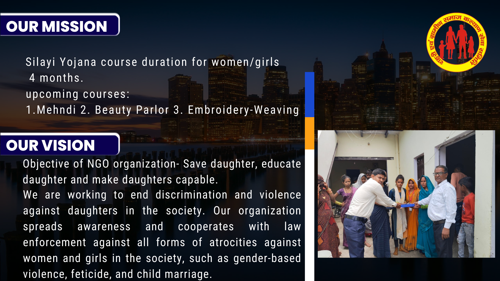Our primary focus lies in the mission of "Beti Bachao, Beti Padhao" and "Betiyo ko Saksham Banao". We are committed to ensuring the birth, education, safety, and empowerment of every girl child. Through initiatives such as birth support, education scholarships, accident insurance, and comprehensive life insurance, we strive to create a supportive environment where girls can thrive and become self-reliant individuals.
